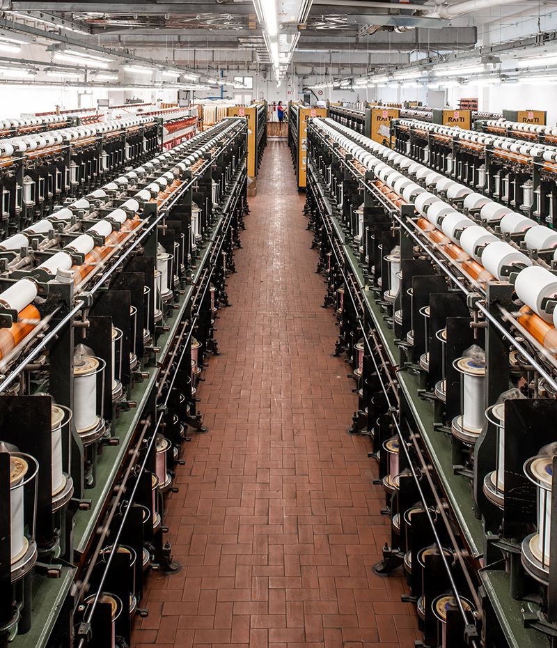 Attraverso delle specifiche lavorazioni, svolte su appositi macchinari, il filato di seta greggia in matasse viene trattato in modo da poter essere utilizzato nelle successive fasi di lavorazione quali: la tessitura, la maglieria, la tintoria, l’aguglieria ecc.